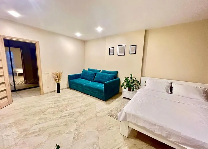 Kun 1 km fra Lviv Kunstpalads, tilbyder Romantic Apartment In The Complex Great Britain ferielejlighed værelser med udsigt over den indre gårdhave. Boligen har et fuldt udstyret køkken som er udstyret med en elkedel, et køleskab og køkkenudstyr.